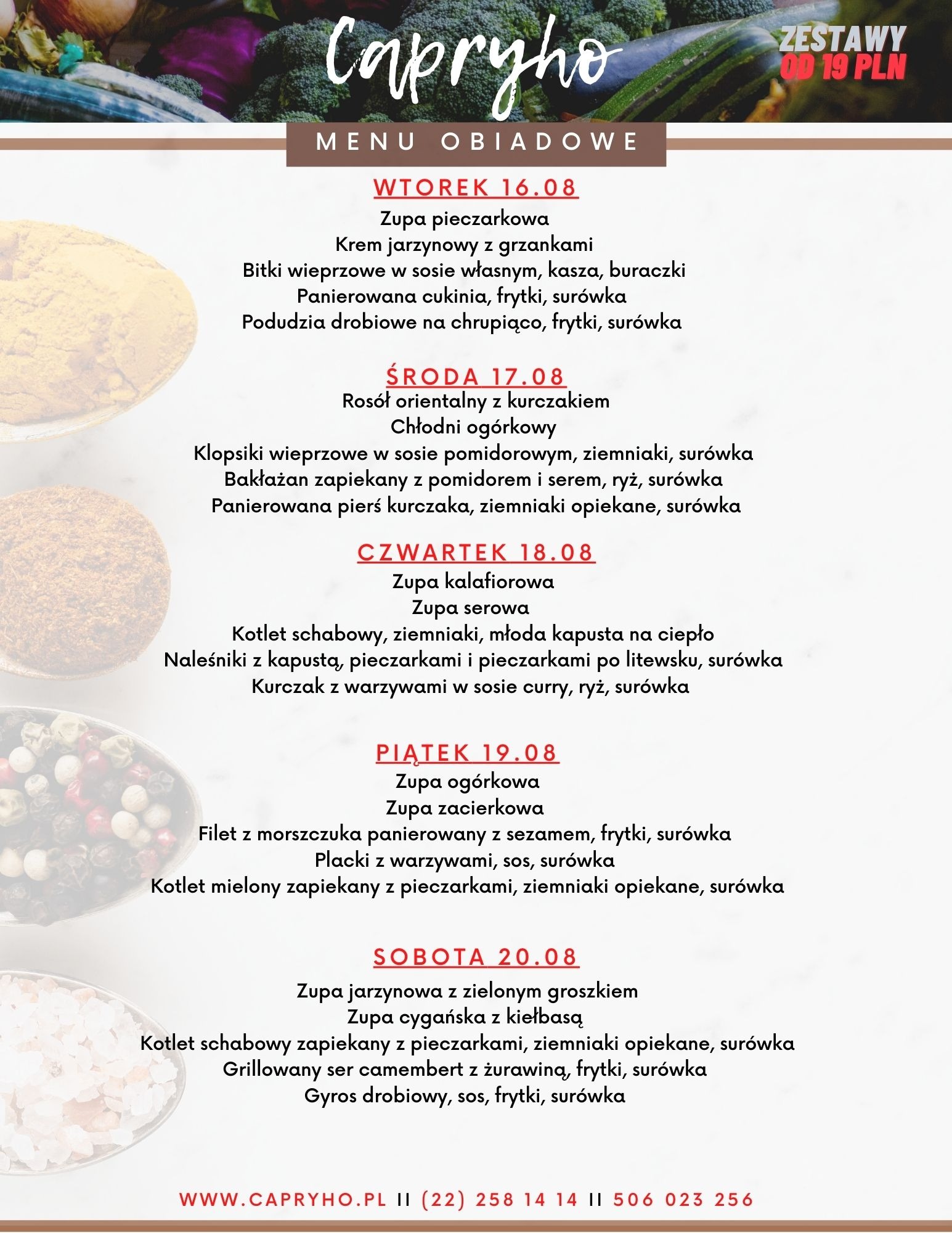 Capryho, czyli prawdopodobnie najlepsze domowe jedzenie na Ursynowie. Gwarantujemy świeżo, smacznie i zdrowo.